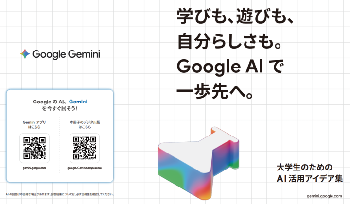 Googleは、全国の大学生と合同で作成した電子書籍Gemini 活用事例集を無料公開しました。講義やレポート作成、就職活動、ニュース理解など、大学生だけでなく社会人にも役立つGeminiの具体的…